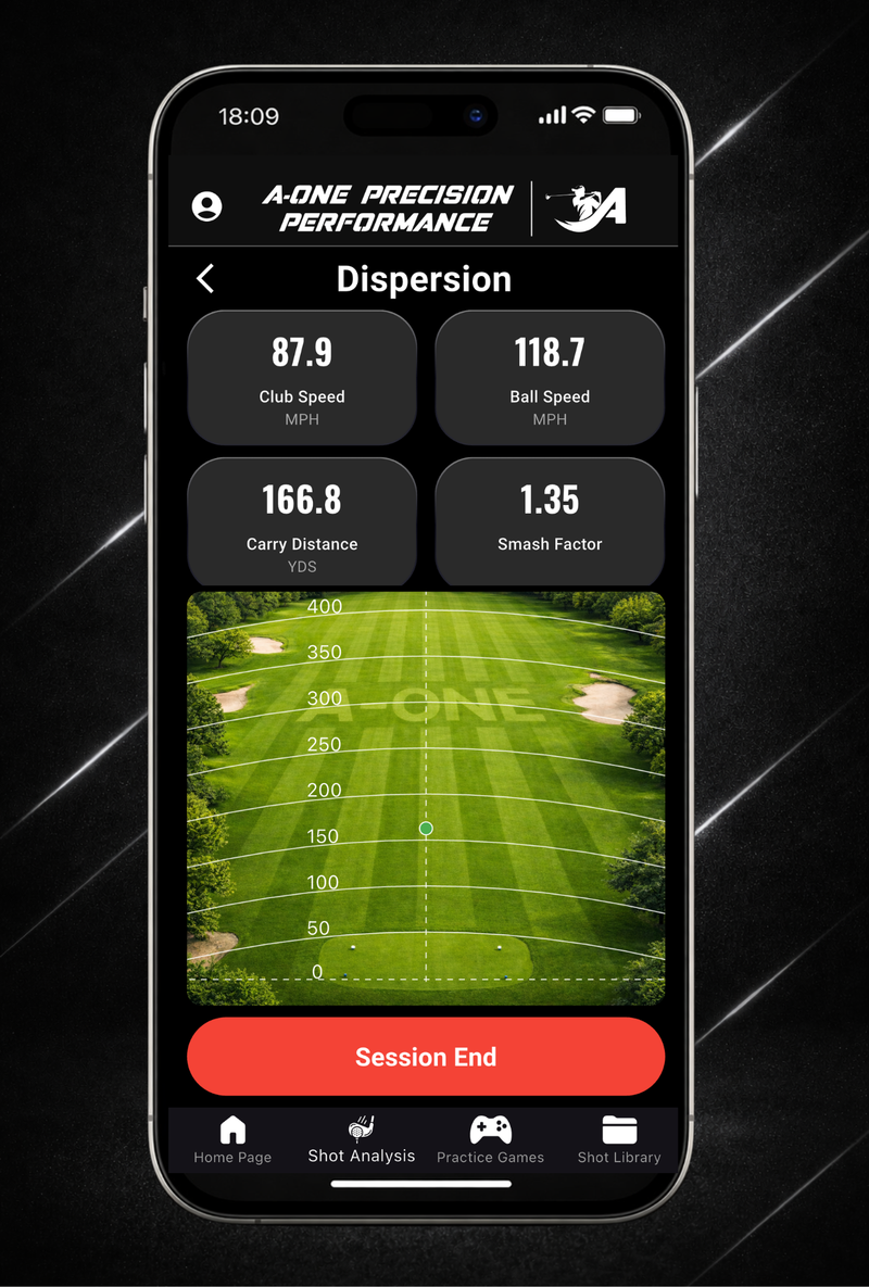 The A-ONE app tracks every shot, measures progress, and turns practice into structured performance sessions.